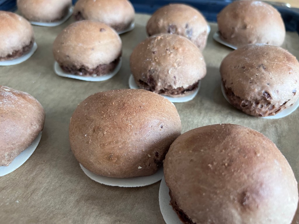 Kleine Brötchen formen und auf eine Oblade setzten.