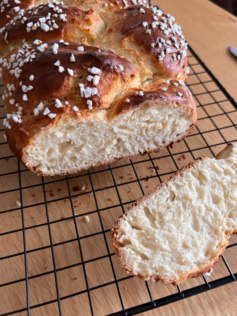 9. 25-30 Minuten backen. Eventuell nach der Hälfte der zeit den Zopf mit Alufolie abgedeckten damit er nicht zu dunkel wird.